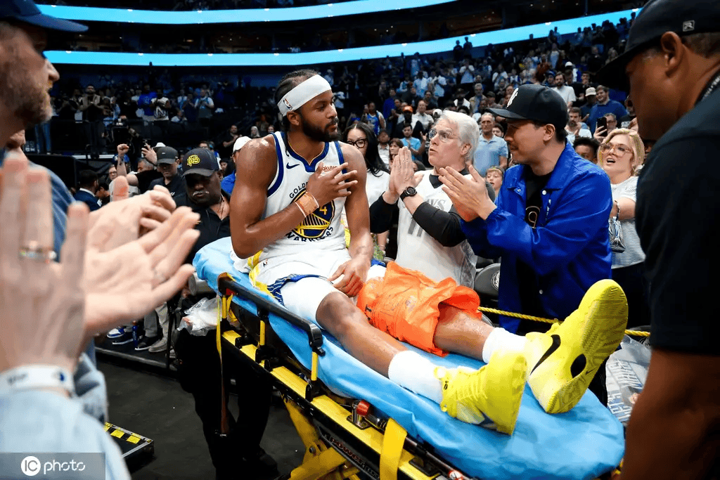 北京时间3月24日NBA常规赛,勇士加时力克独行侠,在加时赛的最后一分钟,勇士球星穆迪在无对抗的情况下摔倒在地,遭遇重伤,随后被担架抬离现场。